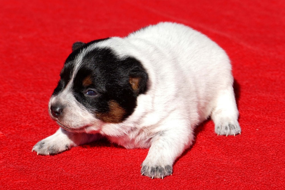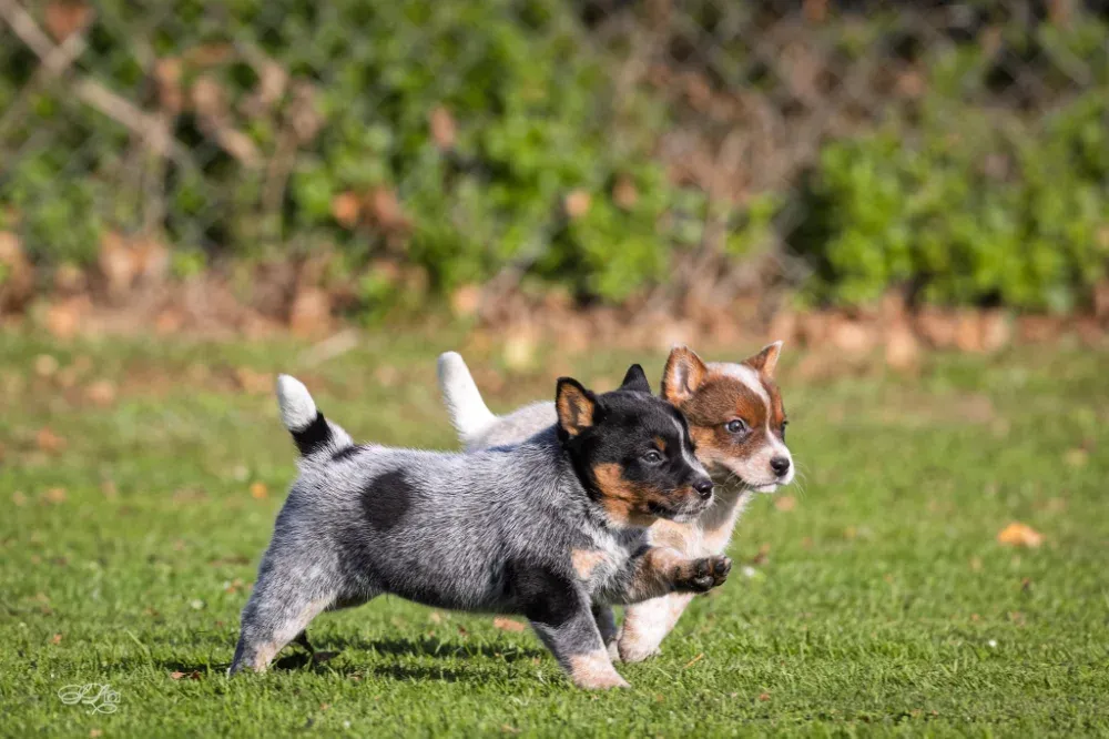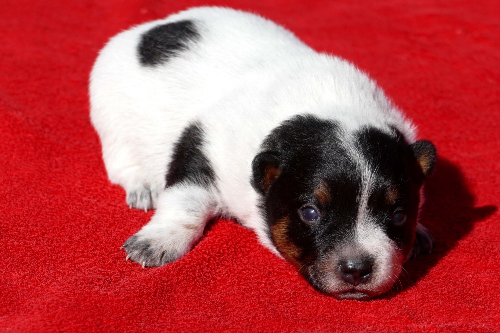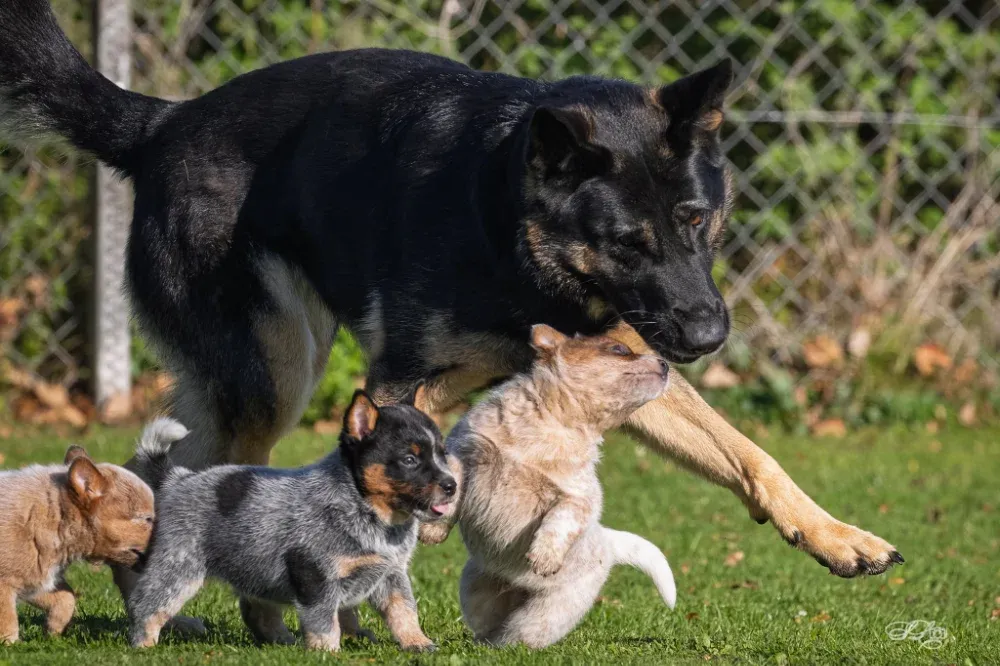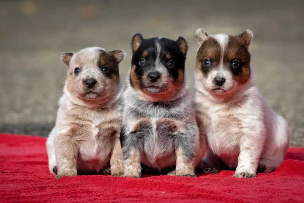 A-Wurf Wurftag: 22.09.2024 1 Rüde blau, 1 Rüde rot, 1 Hündin rot Welpen 8. Woche Welpen 4. Woche Welpen 2. Woche